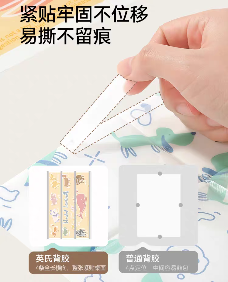 Easy to Use: With four extended adhesive strips, the placemat sticks firmly in place without shifting, and it is easy to tear off without leaving any residue. ✂️🔒
